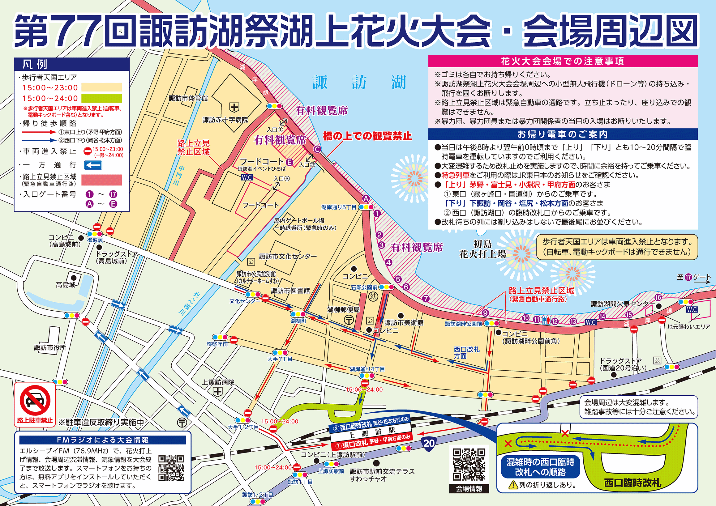 第77回諏訪湖祭湖上花火大会 交通規制図(令和7年8月15日)